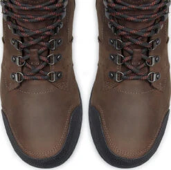 La fermeture lacée à l’avant avec crochets en métal robustes vous permettent de régler l’ajustement selon vos besoins. La semelle d’usure est agrémentée de renforts au niveau des orteils et du talon. On retrouve aussi un imprimé Sorel à l’arrière du pied. La partie supérieure est faite de cuir pleine fleur et possède une languette arrière en cuir qui permet de faciliter l’insertion et le retrait de la botte.