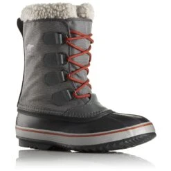 Sorel claims the men’s CARIBOU WL BOOT is often imitated but never equaled. It maintains the comfort, weatherproofing, and timeless aesthetic of the original boot, but with an upgraded liner and full-grain leather upper. The new 9mm thick wool liner is removable, breathable, and ultra-warm. The seam-sealed fully waterproof upper is constructed with a supple full-grain leather, which tightens with a lace-up closure. A durable, fully waterproof shell made of handcrafted vulcanized rubber offers enhanced protection. This vulcanized rubber is furnished to the rugged outsole, which has an aero-trac tread pattern to provide optimal grip on ice and snow. The wool lining also features a Sherpa Pile Snowcuff, which helps prevent deep snow infiltration.