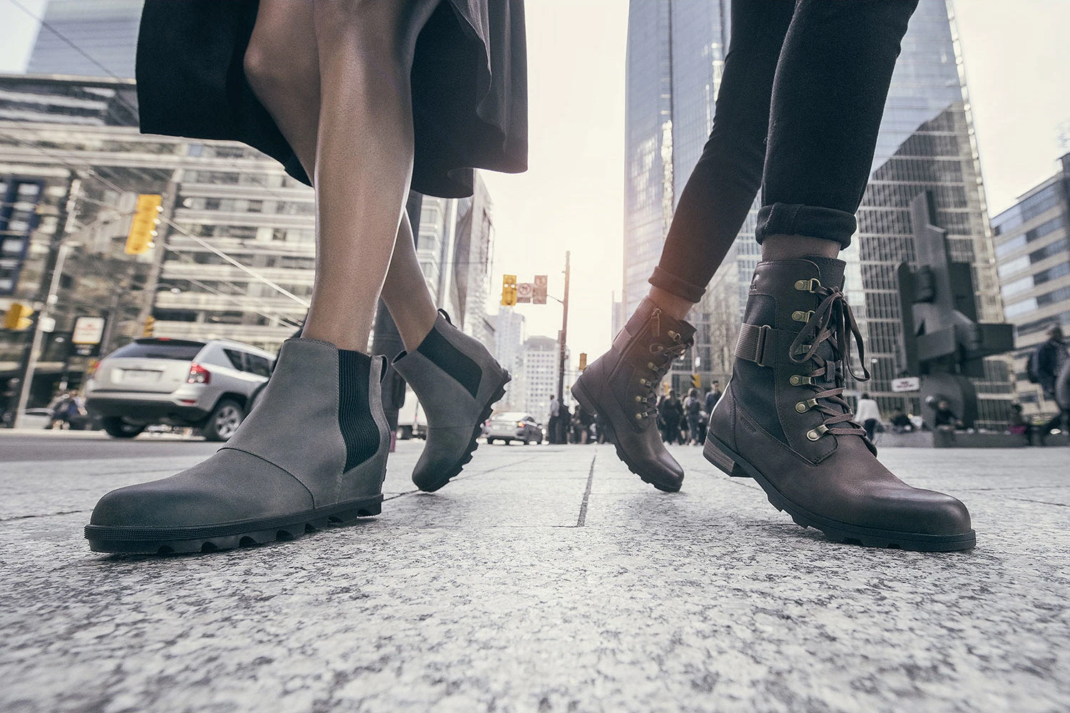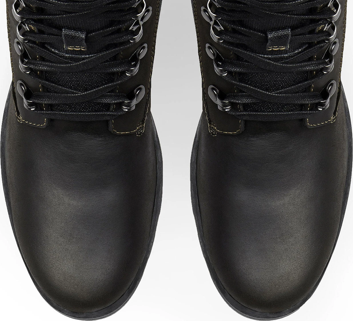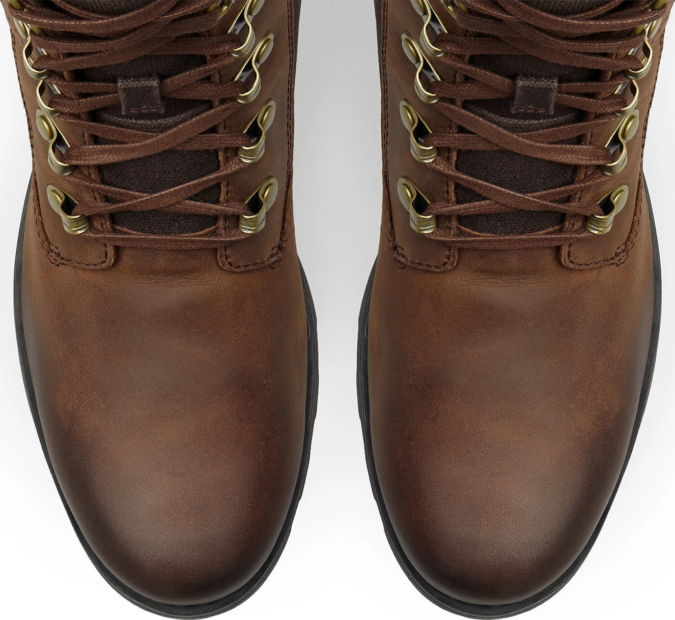 - Leather/coated canvas upper