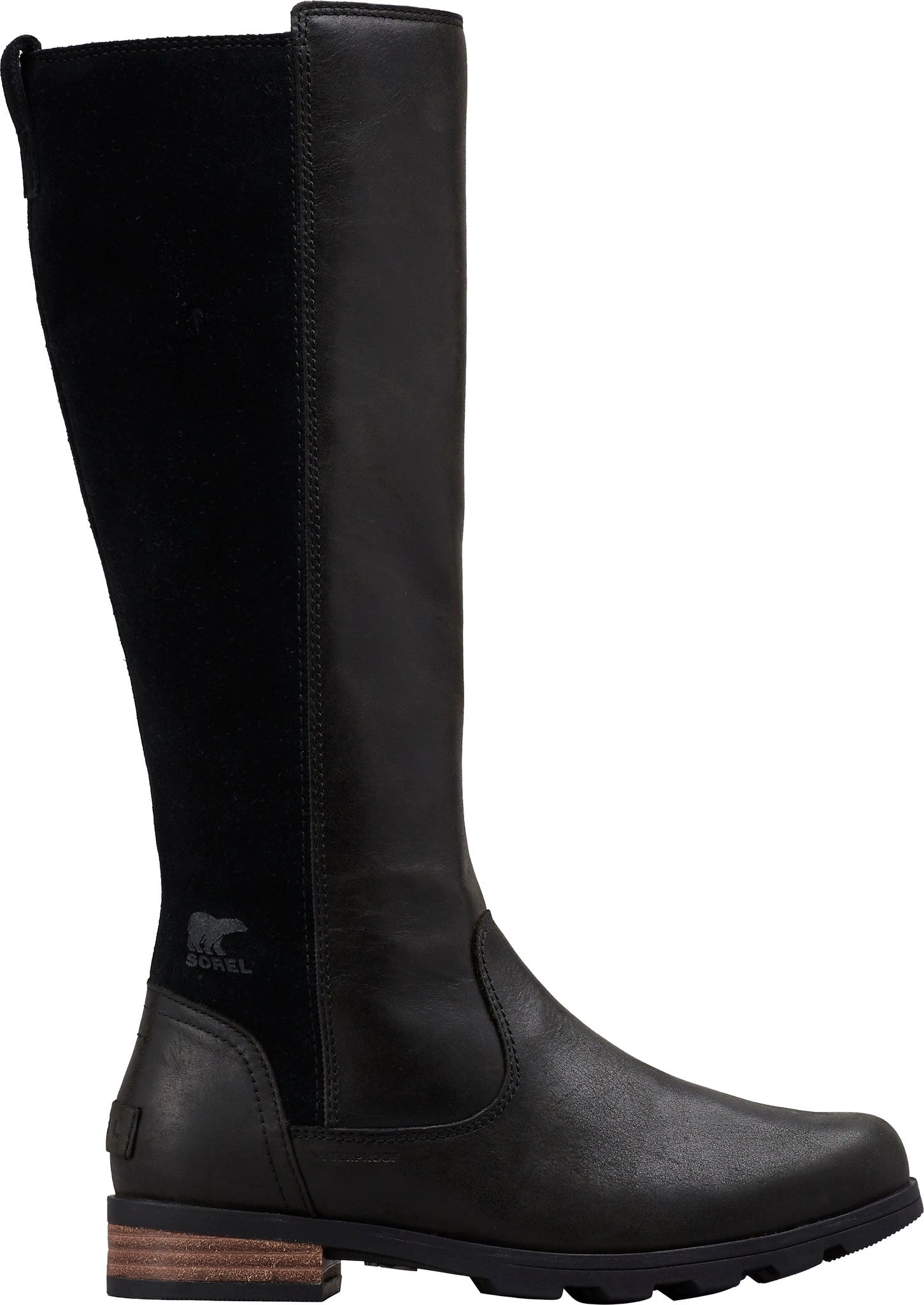 The Women’s EMELIE Tall Boots from Sorel have all the benefits of a rainy-season essential, with a riding boot feel. This tall silhouette is crafted using waterproof leather and suede, with a durable canvas lining and seam-sealed construction. The die-cut memory EVA footbed offers cushioning for all-day comfort. The moulded rubber outsole and rubber midsole provided added durability. The Emelie provides Sorel signature style and coverage, in a wear-all-day design.