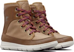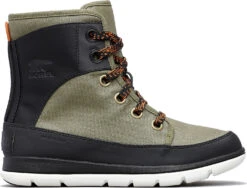 The women’s Sorel EXPLORER 1964 Boot is made for urban light snow conditions when you need something functional with a touch of style to get to work or brunch. The retro two-tone colour upper is waterproof-coated canvas and synthetic leather. The membrane is 100% waterproof and breathable construction. A soft microfleece lining and 100 grams of insulation keep the inside warm. Comfort comes first with a removable PU-like EVA molded footbed and a microfleece top cover. An outsole-grade EVA midsole provides strength, reflex, and protection. The outsole itself is a mix of outsole-grade EVA and molded rubber pods. Underfoot the brand’s famous SOREL wordmark leaves it’s trail behind.