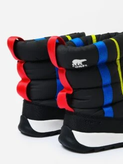 Insulated boot with a puffy waterproof construction.