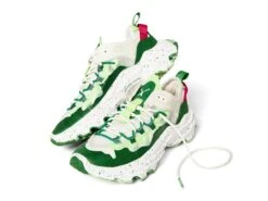 - Textile upper with synthetic overlays.