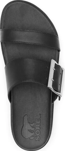 • Upper: A twist on a classic slide for an edgy and effortless look. Available in full grain leather or suede. Buckle detail with hidden gore for adjustability. Synthetic lining