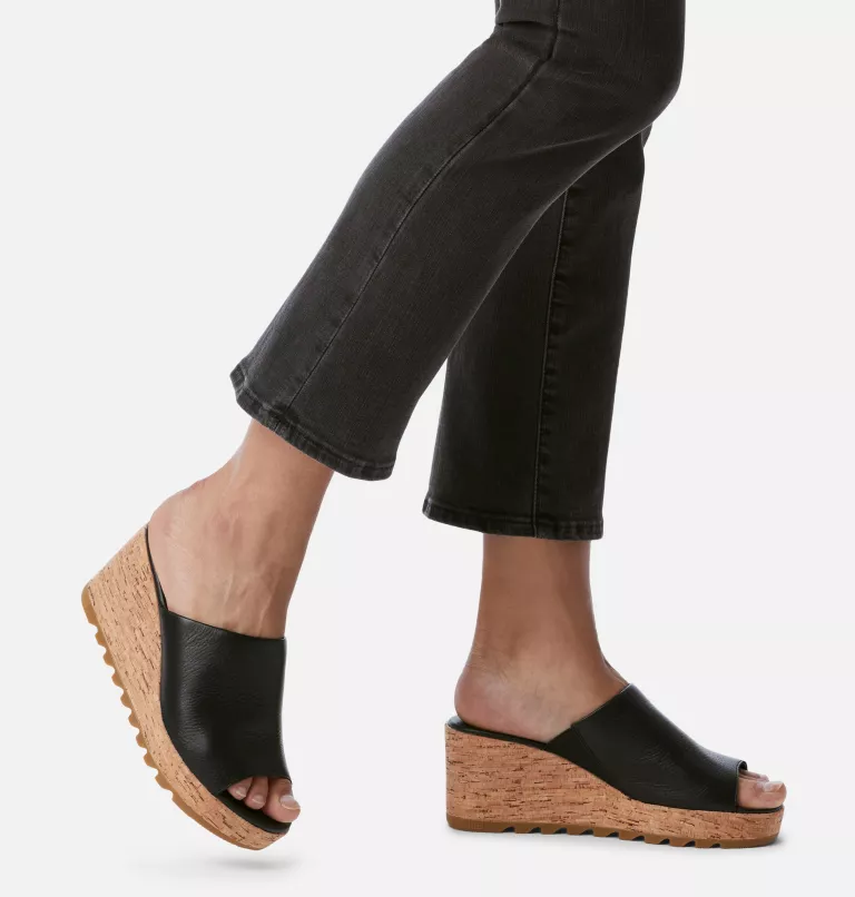 The SOREL CAMERON™ WEDGE MULE is a stylish and comfortable sandal that is built to last. The upper is made of full-grain leather strap with medial side gore for superior fit. The wedge gives light lift while outsole rubber cupsole construction with iconic SOREL scallop & razor design enhances durability and traction.