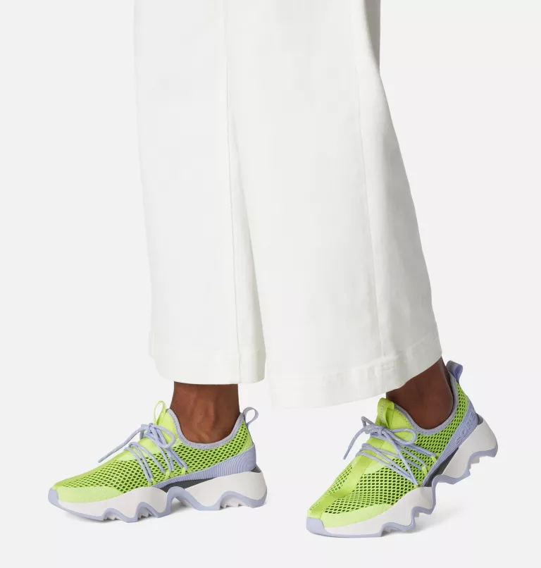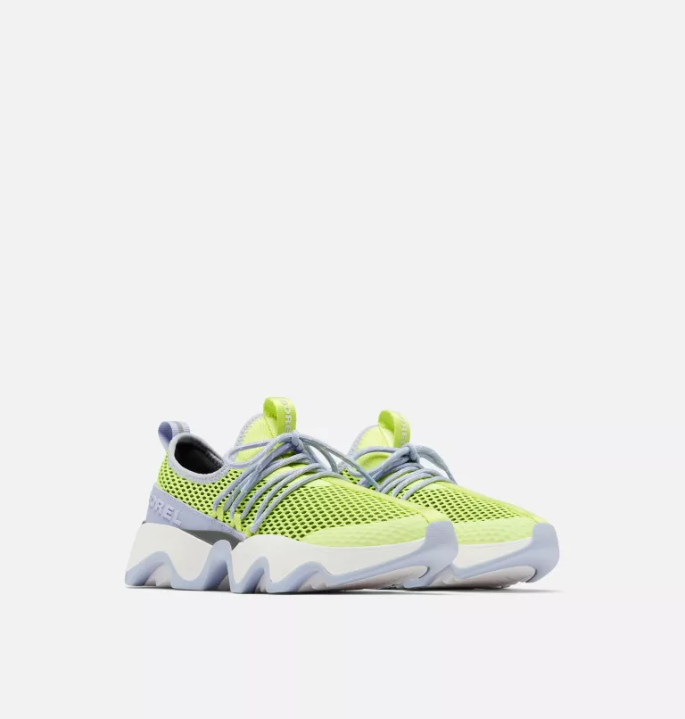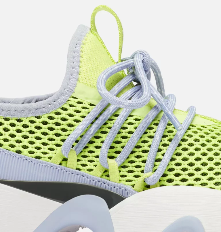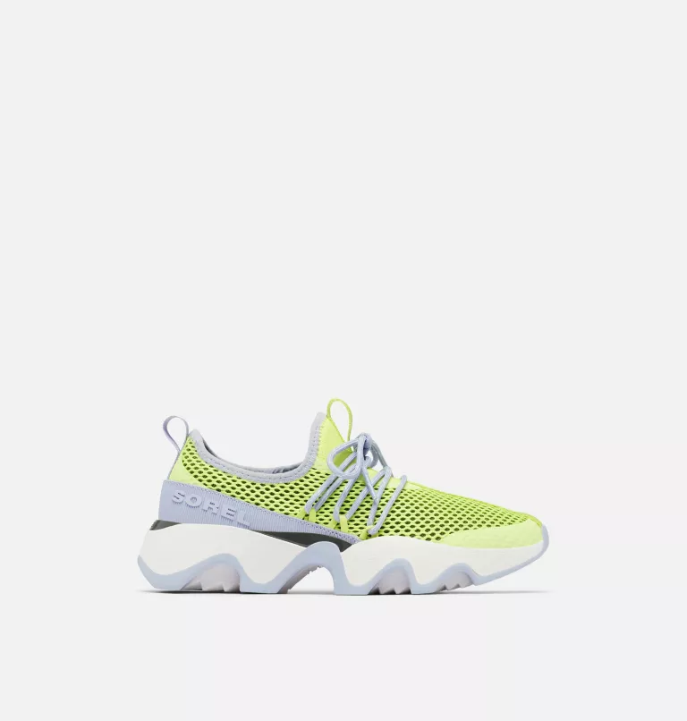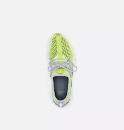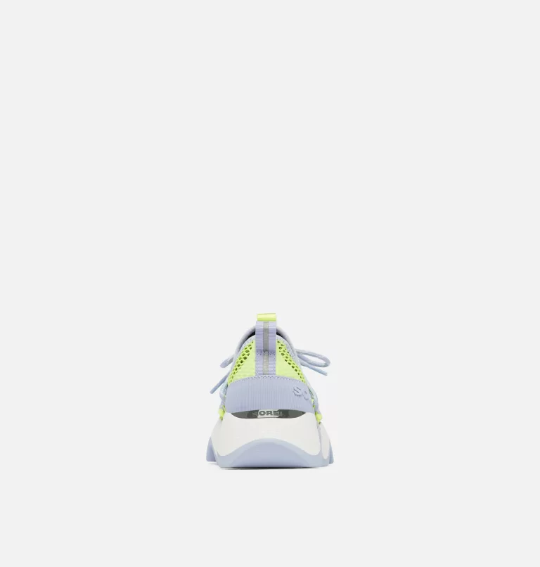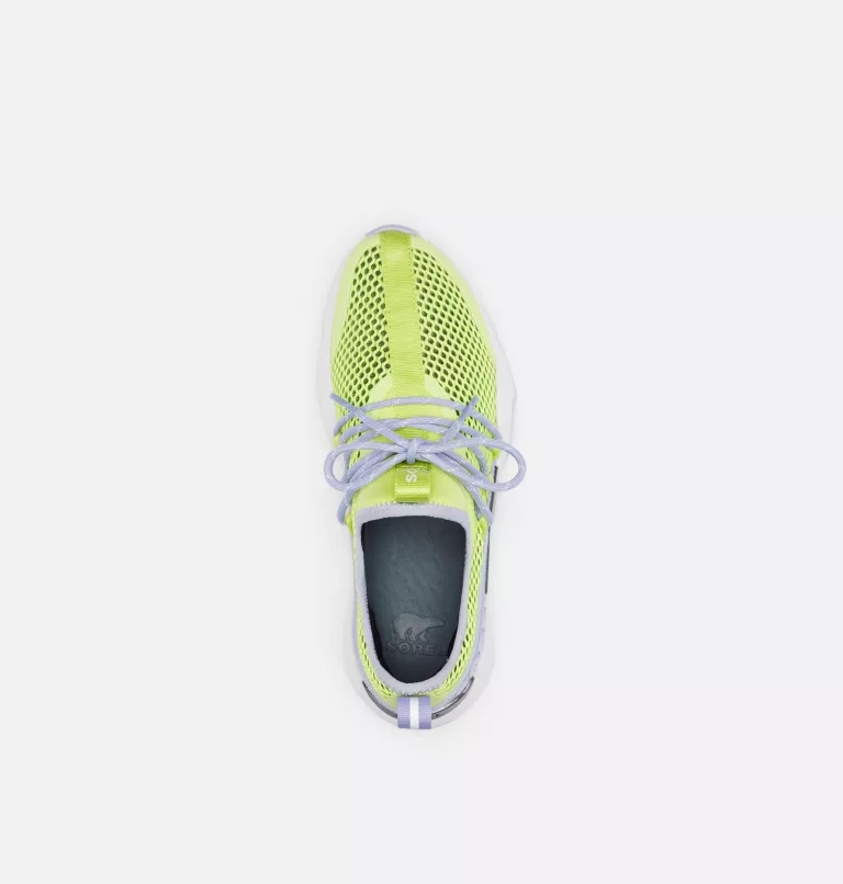 - UPPER: Breathable mesh in a bootie construction with lace detail for a secure fit. Webbing detail down vamp with a pull tab in heel and front collar. Leather rand with SOREL logo.