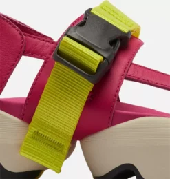 - UPPER: A sporty fashion upper features beautiful lines of full grain leather that frame the foot while locking it onto the platform. Fun buckle detail on instep provides customized fit for the adventures ahead. Synthetic lining. Gore cookie on medial side.